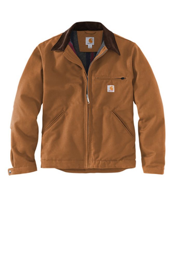 • The original Detroit Jacket built a reputation for toughness on the backs of warehouse workers, farmhands and ranchers across America. With its signature corduroy collar and heavyweight fabric, this updated Detroit jacket is a rugged layer worthy of any job. • 12-ounce, firm hand, 100% ring spun cotton duck canvas • Water-repellent and wind-resistant • Blanket-lined body for warmth • Quilted nylon sleeve lining for easy on-and-off • Corduroy-trimmed collar with hidden snaps for optional hood • Two-way brass center-front zipper • Left chest pocket with zipper closure • Two interior pockets • Two lower-front pockets • Pleated bi-swing back • Snap adjustable cuffs and waist • Carhartt-strong, triple-stitched main seams • Carhartt label sewn on left pocket • Relaxed fit